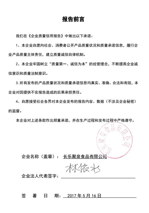 2017年年度質(zhì)量誠信報告